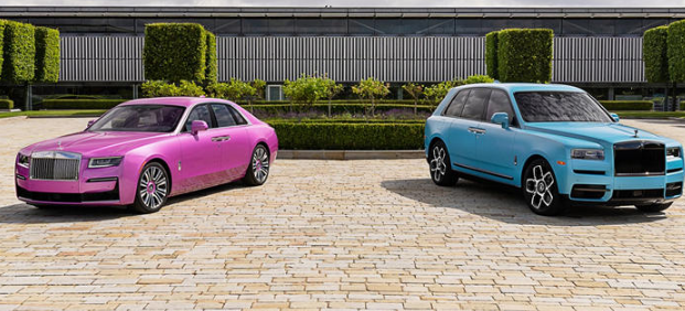 首先登场的是劳斯莱斯幽灵,你根本不能错过。定制的 Friskee 粉红色是这种颜色,以前从未在 Ghost 上见过。将这种颜色巧妙地涂在车轮中心盖上以增加一点戏剧性,钻石切割的辐条不知何故似乎更加充满活力。